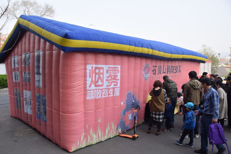 让小朋友们更直观的了解消防,学习一些最基本的火场逃生方法。到队后,消防宣传员带领小朋友参观了消防车辆和消防器材,对消防车辆的性能给小朋友进行了细心讲解,并让小朋友逐个进入车内体验坐消防车的感觉。随后,来到了器材区,消防官兵细心生动的给小朋友讲解了无齿锯等破拆器材的用途和注意事项,了解完器材之后,来到了消防云梯车旁,当小朋友看到云梯车之后,被云梯车的帅气外形深深的吸引,消防官兵为小朋友演示了云梯车的高空救援技术。最后,消防员叔叔们利用支队前期配发的消防逃生帐篷,让小朋友和家长们模拟体验火场逃生。